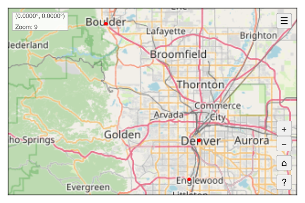 app = explore()This opens an interactive map centered on the Continental United States using OpenStreetMap tiles.